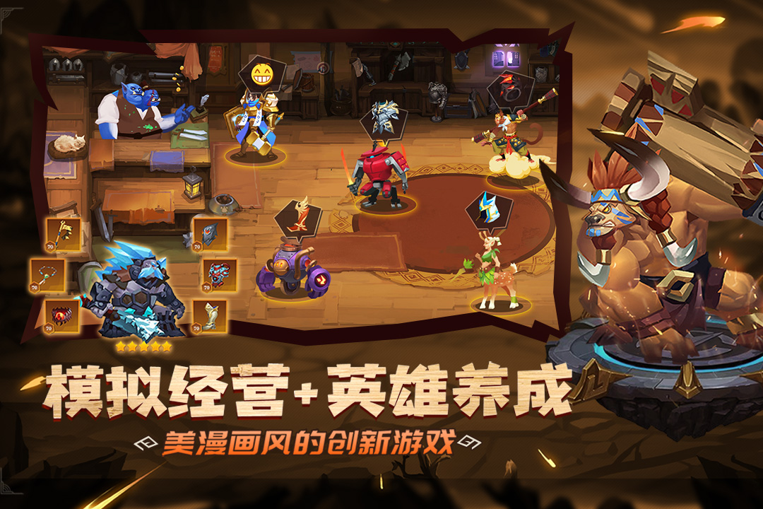 ,制作到销售,《天黑装备铺》是一款独特的模拟经营和英雄卡牌深度结合的游戏。玩家能够亲自打造英雄穿戴的装备,完成任务可以获得奖励和经验值。以下是游戏的主要玩法: 1. 运营装备铺 :玩家将扮演一名装备铺的老板,组队